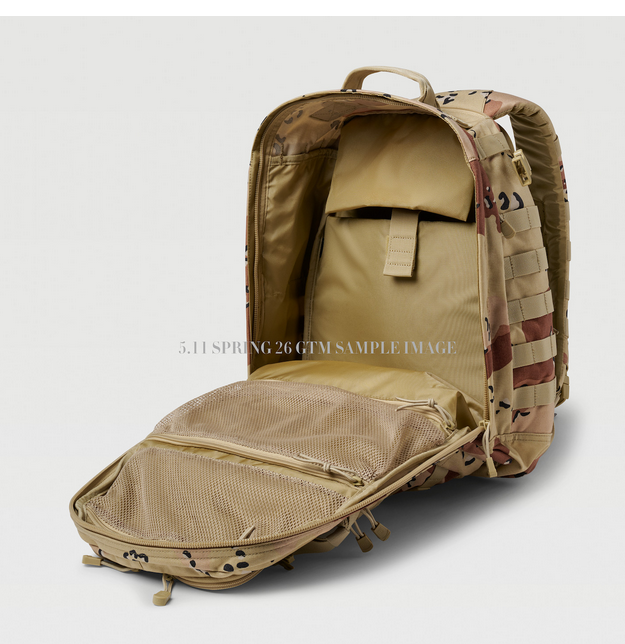 DIMENSIONS Compartiment principal – 20 « H x 12,5″ L x 8 » Poche avant – 12,5 « x 11″ x 2 » Poche d’hydratation -17 « x 12,5 » Capacité totale – 2275 pouces cubes / 37 litres Poids – 3,84 lb Design Center Line ™ signature de 5.11 Poche inférieure avant avec glissière interne et poches zippées, organisation administrative Deux poches zippées sur le dessus avec bande nominative 6×1 et poches internes Bande externe avant et latérale MOLLE avec boucle 3×3 Lunettes / poche multimédia doublées en polaire Fabriqué à partir de nylon 1000D haute résistance et hydrofuge Deux poches zippées latérales externes Pochette rembourrée pour ordinateur portable et deux poches en filet dans le compartiment principal Compartiment anti-horaire caché avec panneau en boucle Compartiment d’hydratation arrière Système de bandoulière à empiècement profilé avec bande MOLLE Boucles d’engrenages en bande du panneau inférieur Compatible avec le système de niveau 5.11®