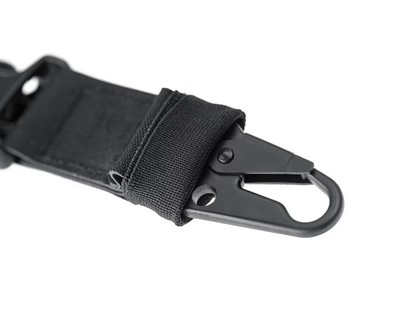 The CLAWGEAR One Point T-End Sling Snap Hook was designed as a PALS-mounted (preferably on a tactical vest) minimalist sling. Thanks to its design, the front section provides elasticity, allowing for slightly greater freedom of movement. The sling features a single size adjustment with a detachable front attachment. The steel snap hook is covered with an elastic sleeve to minimize noise.